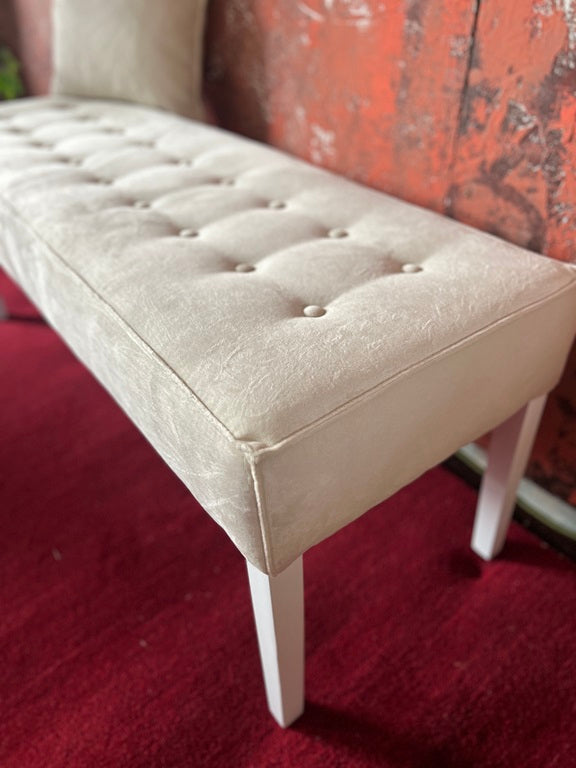 Gefertigt aus hochwertigen Materialien, verspricht diese Polsterbank langlebige Freude und höchsten Sitzkomfort. Jedes Exemplar wird in unserer hauseigenen Werkstatt gefertigt und überzeugt durch tadellose Verarbeitung und Liebe zum Detail. Ob als Sitzgelegenheit oder dekoratives Möbelstück – diese Polsterbank bringt Harmonie und Stil in Ihr Zuhause.